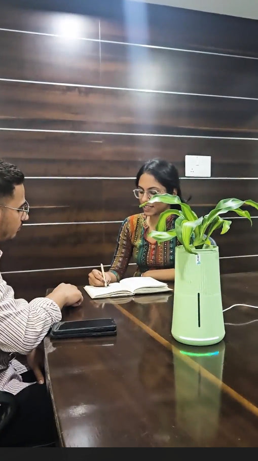 Plant1 is made to blend into everyday interiors on tables, shelves, kitchen counters, work desks, and bright corners with indirect light. It also works beautifully in commercial spaces like offices, reception desks, cafés, studios, clinics, and coworking areas anywhere you want low maintenance greenery without frequent manual watering or maintenance.